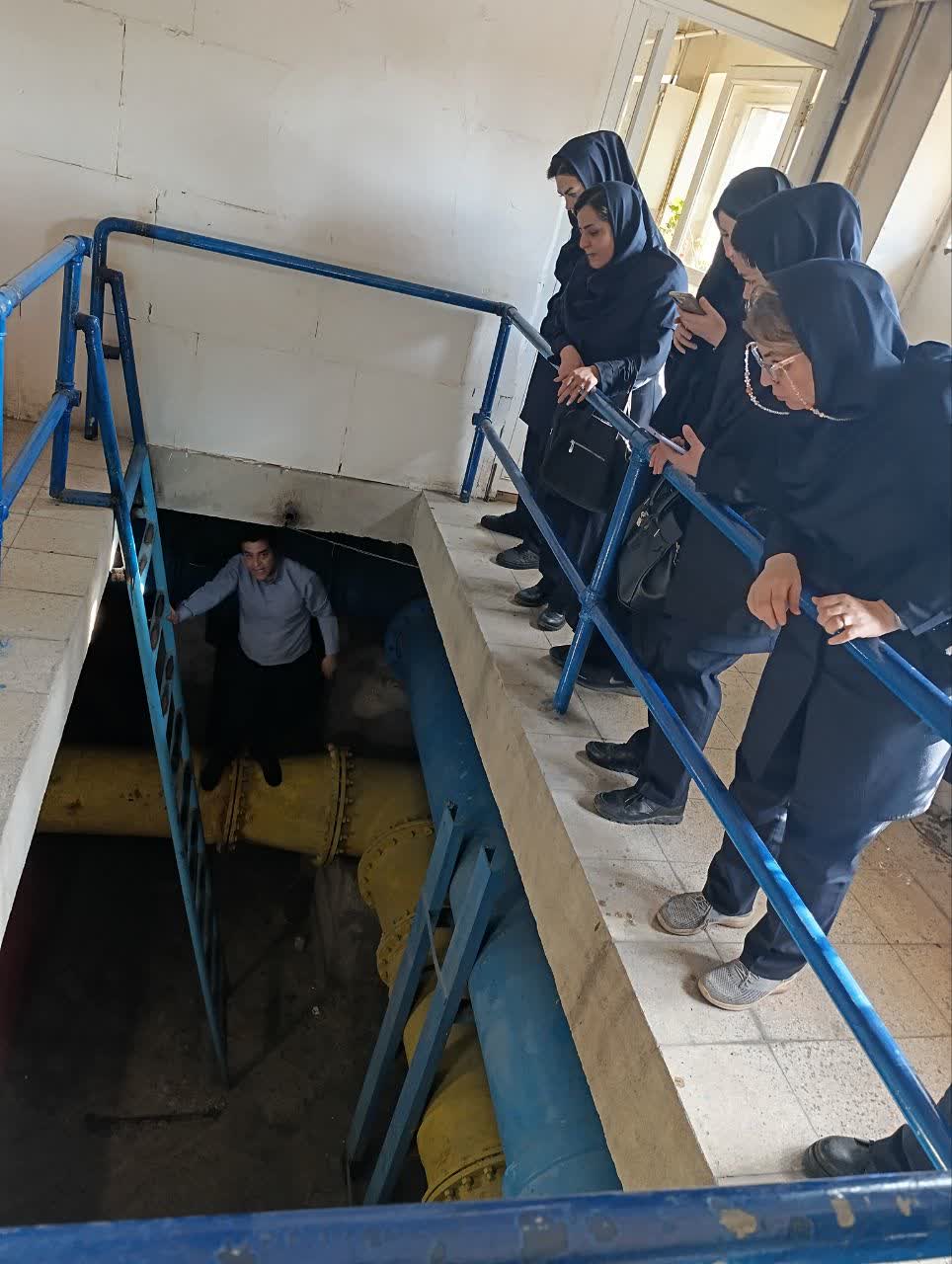در بخش انبار تجهیزات ، انواع لوله ها ، اتصالات و ابزارهای مرتبط شناسایی و توسط کارشناسان فنی معرفی و تشریح شدند . مخزن ذخیره آب از نظر ایمنی مورد بررسی قرار گرفت و نکات مرتبط با بازرسی های دوره ای و الزامات ایمنی ارائه شد . در ادامه گروه آموزشی به یکی از محلات اعزام و از نزدیک نحوه ترمیم شبکه حادثه دیده بازدید به عمل آوردند.